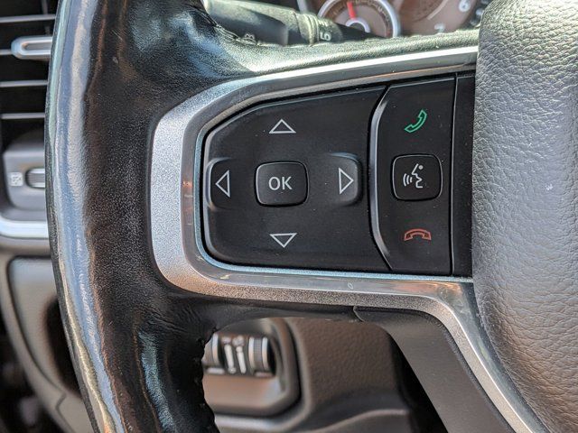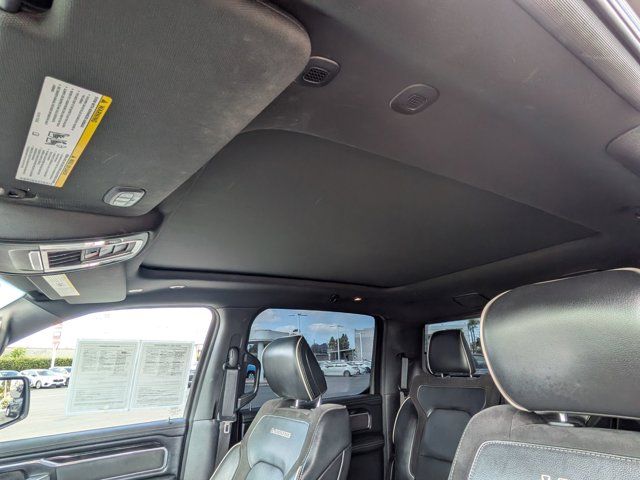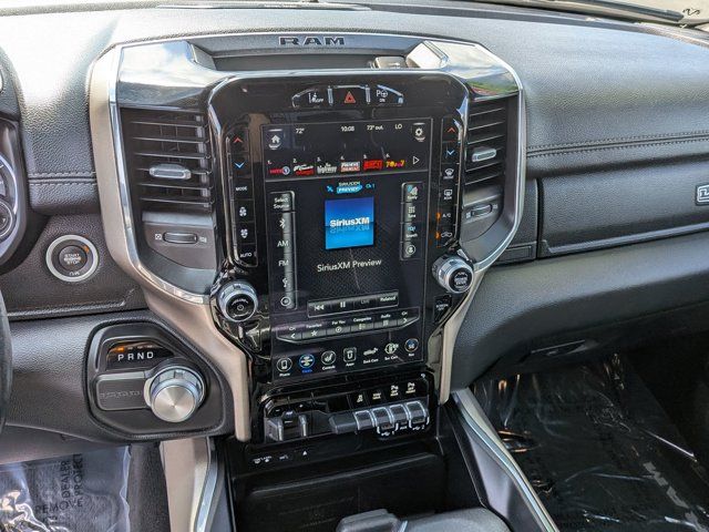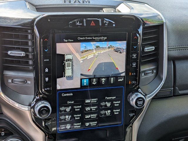 Diamond Black Crystal Pearlcoat #1 Seat Foam Cushion, 1-Yr SiriusXM Guardian Trial, 3 Rear Seat Head Restraints, 4 Way Front Headrests, 5-Year SiriusXM Traffic Service, 5-Year SiriusXM Travel Link Service, 8.4" Touchscreen Display, Adaptive Cruise Control w/Stop & Go, Advanced Brake Assist, Advanced Safety Group, Apple CarPlay, Auto High Beam Headlamp Control, Black Appearance Package, Black Exterior Truck Badging, Black Headlamp Bezels, Black Interior Accents, Blind Spot & Cross Path Detection, Body Color Door Handles, Body Color Front Bumper, Body Color Rear Bumper w/Step Pads, Bucket Seats, Center Console Parts Module, Disassociated Touchscreen Display, Driver Seat Memory, Dual Exhaust w/Black Tips, Foam Bottle Insert (Door Trim Panel), For Details, Visit DriveUconnect.com, Front Seat Back Map Pockets, Full Length Upgraded Floor Console, Full Speed Forward Collision Warning Plus, GPS Antenna Input, GPS Navigation, Grille B/Color Outline 3 Texture 4, harman/kardon 19 Speaker Premium Sound, HD Radio, Heated Front Seats, Heated Second Row Seats, Heated Steering Wheel, Integrated Center Stack Radio, Lane Keep Assist, Laramie Level 2 Equipment Group, Leather Trimmed Bucket Seats, No Satellite Coverage w/HI/AK/PR/VI/GU, Parallel & Perp Park Assist w/Stop, ParkSense Front/Rear Park Assist w/Stop, Power 4-Way Driver Lumbar Adjust, Power 4-Way Passenger Lumbar Adjust, Power 8-Way Driver & Passenger Seats, Power Heated Fold-Away Mirrors, Quick Order Package 25H Laramie, Radio: Uconnect 4C Nav w/8.4" Display, Rain Sensitive Windshield Wipers, Rear 60/40 Folding Split Recline Seat, Rear Underseat Compartment Storage, Remote Tailgate Release, Single Disc Remote CD Player, SiriusXM Satellite Radio, SiriusXM Traffic Plus, SiriusXM Travel Link, Sport Performance Hood, Tailgate Ajar Warning Lamp, Ventilated Front Seats, Wheels: 22" x 9" Polished Painted, Wireless Charging Pad.